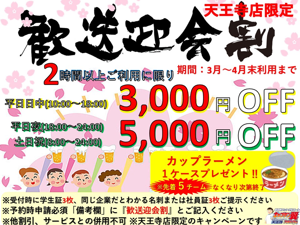 3月~4月利用予約から利用できる【歓送迎会割】スタートします!