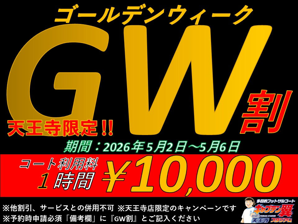 ※事前申請必須!ご予約時に【GW割】と備考欄に記入、